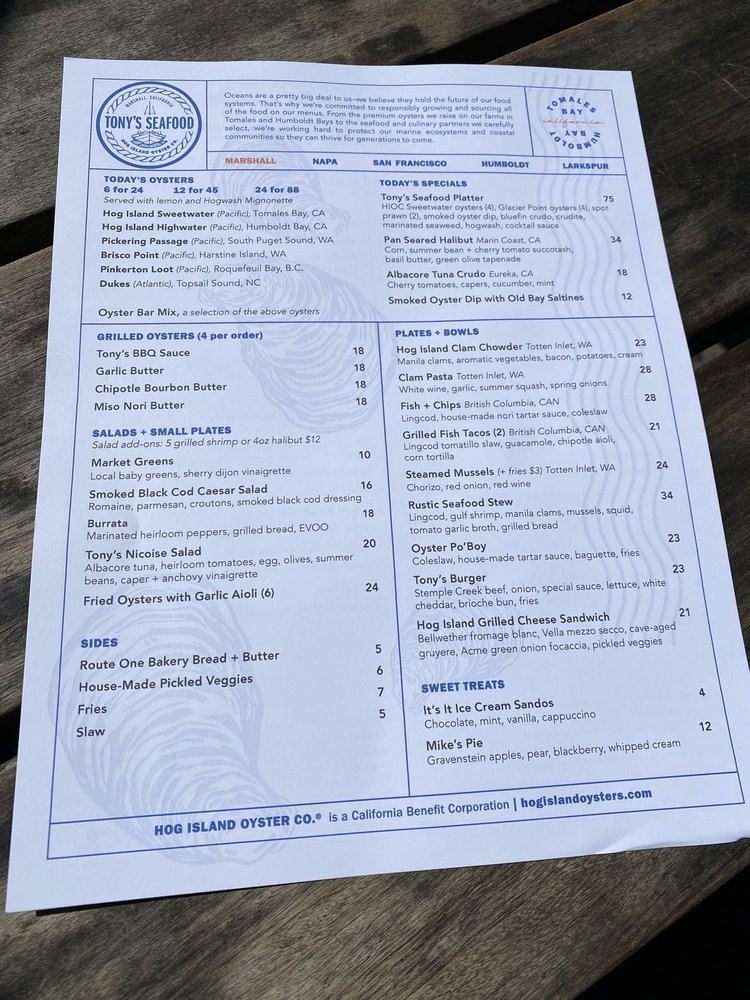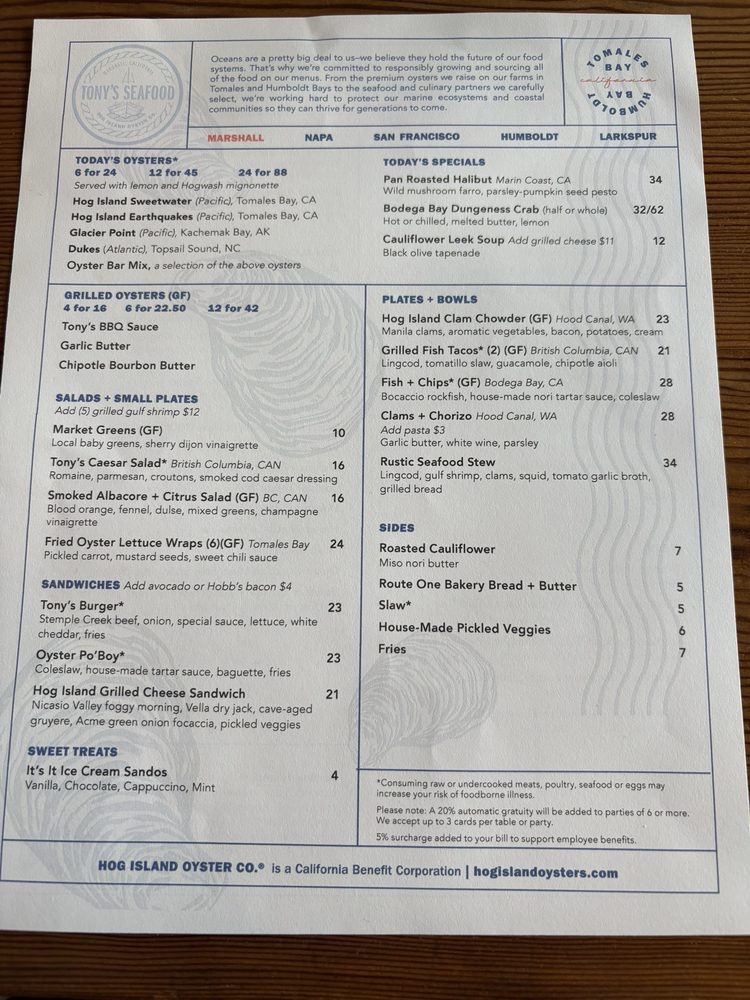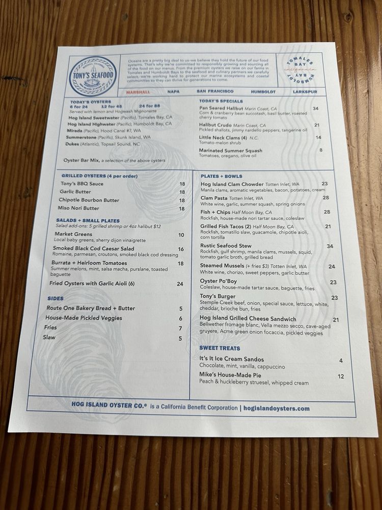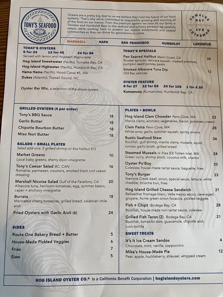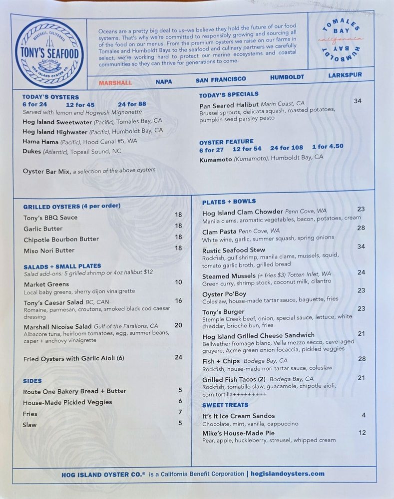 Welcome to Tony’s Seafood Restaurant, where the coastal flavors of Marshall, California, come alive. Our menu embodies the essence of seafood dining, featuring standout dishes like Grilled Oysters with Chipotle Bourbon Butter or Roasted Jalapeño, each priced at $17. For those craving something more substantial, the Fried Oyster Po' Boy and Chicken Sandwich promise to delight with their homemade sauces and fresh ingredients.